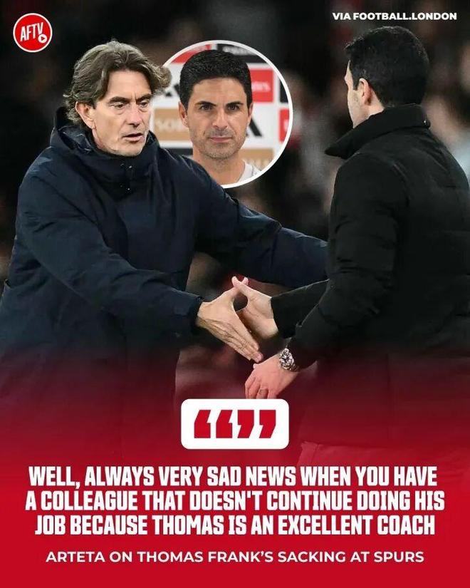 热刺在主场1-2不敌纽卡斯尔联,英超连续8轮不胜,仅领先降级区5分。赛后,热刺宣布换帅,主帅弗兰克黯然下课。据统计,弗兰克一共执教热刺244天,带队英超26场比赛仅赢下7场。在首回合北伦敦德比战中,热刺1-4完败阿森纳。而在下周末,热刺将坐镇主场迎战阿森纳,届时球队将由新帅带队出战。正所谓换帅如换刀,这对阿森纳而言并非好消息。