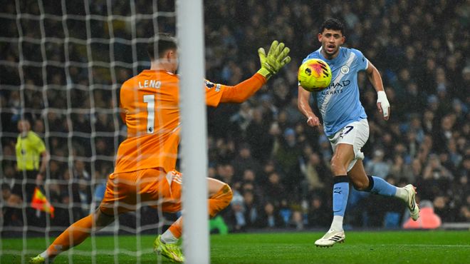 第24分钟,曼城如法炮制,罗德里将球分到右路,努内斯果断传中,哈兰德头球没能顶到,皮球砸在博格的头上造成乌龙助攻,塞梅尼奥抢射破门。
