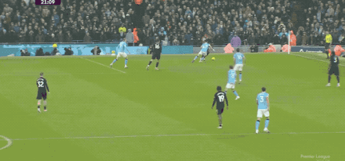 曼城的反击接踵而至,哈兰德的传球相当关键,塞梅尼奥向中路盘带,却突然斜传,奥莱利轻巧搓射,曼城两球领先。